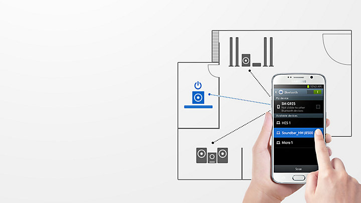 Sistemul audio Samsung HW-K335 propune conexiunea wireless prin intermediul tehnologiei bluetooth, astfel ca nu veti mai avea nevoie de niciun cablu de legatura intre soundbar si subwoofer sau intre cele doua si televizor. Gratie sistemului TV SoundConnect veti castiga atat la capitolul de mobilitate a componentelor, pe care le veti putea muta mai usor oriunde vi se pare ca dau randament mai bun, cat si la capitolul estetic. In plus, tehnologia bluetooth permite controlul sistemului audio prin intermediul dispozitivelor mobile inteligente. Pe langa controlul functiilor, aceasta tehnologia permite si redarea de fisiere media din online sau stocate deja pe smartphone-uri sau tablete, avand astfel posibilitatea chiar sa va organizati playlist-uri. Va trebui doar sa descarcati aplicatia Samsung Audio Remote (gratuit pe iOS si Android).